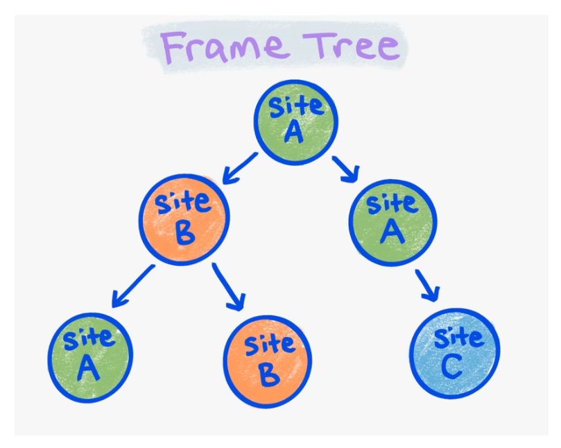 단일 브라우저 탭 내에서 서로 다른 사이트의 프레임은 항상 서로 다른 렌더 프로세스에 있지만 동일한 사이트의 프레임은 항상 동일한 렌더 프로세스에 있다. 렌더링의 관점에서, 다중 렌더 프로세스의 중요한 장점은 사이트 간 iframe과 탭이 서로 성능 격리를 달성한다는 것이다. 게다가, origin은 훨씬 더 많은 고립을 선택할 수 있다.
