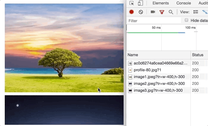 이 모든 예에서 세 번째 이미지는 미리 눈치채지 못한 경우입니다. (image3.jpg)는 뷰포트 외부에 있는 경우에도 항상 사전에 로드됩니다.이 작업도 같은 원리에 따라 수행되었습니다.즉, 보다 나은 사용자 경험을 위해 문턱값까지 정확하게 로드하는 것이 아니라 약간 미리 로드하는 것입니다.